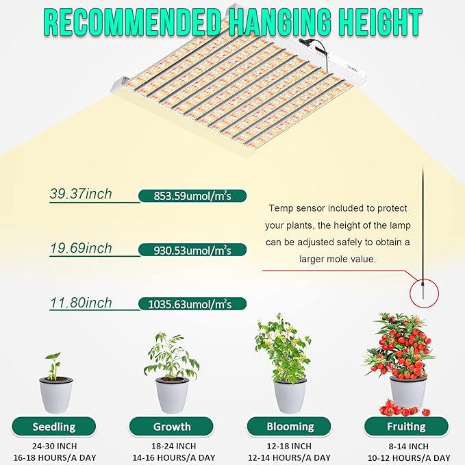 SZHLUX 500W LED Grow Light 4x4/5x5ft with Timer and Temp Control, Full Spectrum Grow Lamp with 1056 Diodes,Indoor Plants for Seedling Veg and Bloom Grow Light