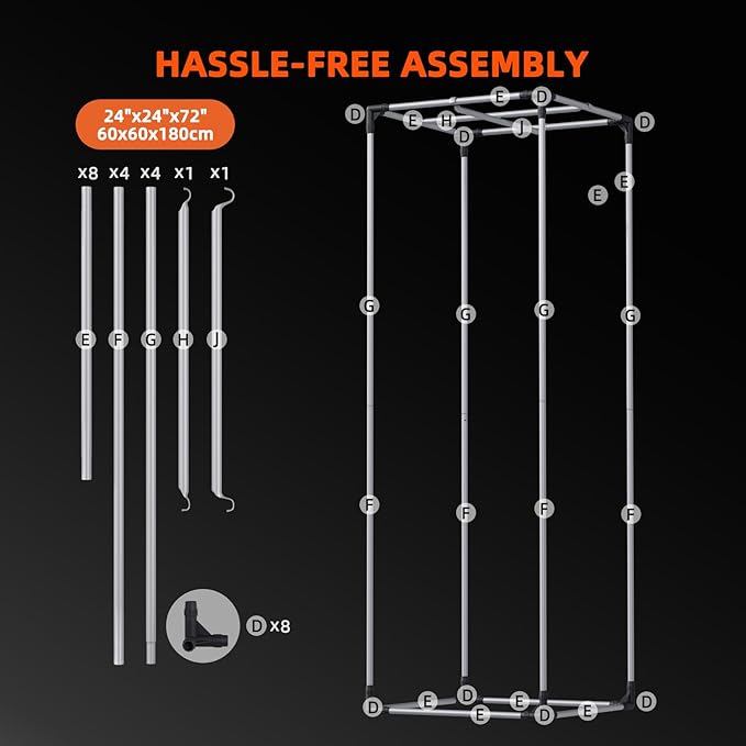 - TOOL-FREE SETUP IN MINUTES: Connect the metal frame to the corner adapter, pull the tent on, add the floor tray and hanging bars, and start growing faster with ultra-stable construction