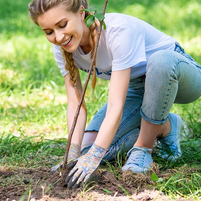 - GARDENING GLOVES SPECIALLY FOR WOMEN - Lightweight & breathable knitted base for a comfortable fit. Flexible rubber gardening gloves keep your hands cool & dry. Thicken fingertip to protect your hand and nails. Long and flexible cuff to keep dirt and debris out.