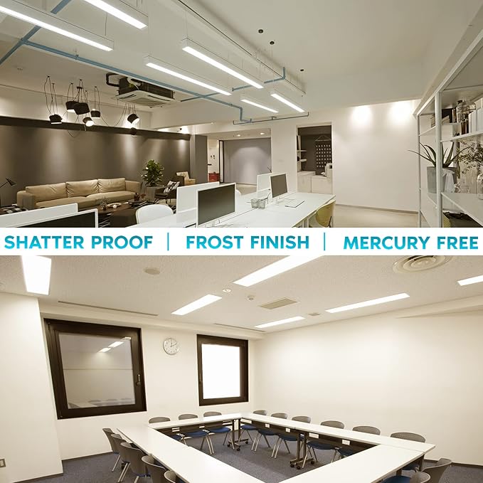 - High Brightness & Efficiency β Each 4-foot LED tube delivers 3000 lumens of 4000K cool white light at 24β54W, achieving an efficiency of 125 lm/W. Ideal for use in garages, workshops, offices, basements, and utility rooms as a direct replacement for 48-inch fluorescent tubes.