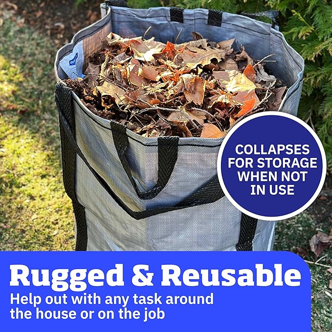 - MULTI-USE: Use both indoors and outdoors. Whether it is projects in your yard or garden, or storing that extra bedding or holiday decorations, these lawn bags heavy duty are up to the task. The versatility of the DuraSack makes it perfect for garden or yard waste, storm debris cleanup, demolition, home and garage storage, construction and contractor use, or even pop up trash cans for parties.