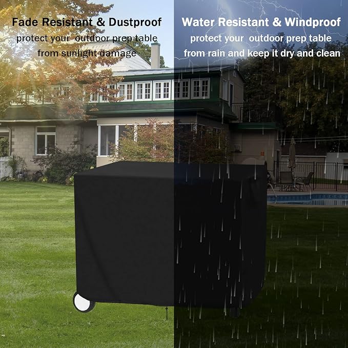 - ALL SEASON PROTECTION: Made of high-density 420D oxford fabric, this outdoor prep table cover is waterproof, dustproof and effectively protects your outside table against the sunlight damage, keeping it clean and dry, which is super practical for outdoor!