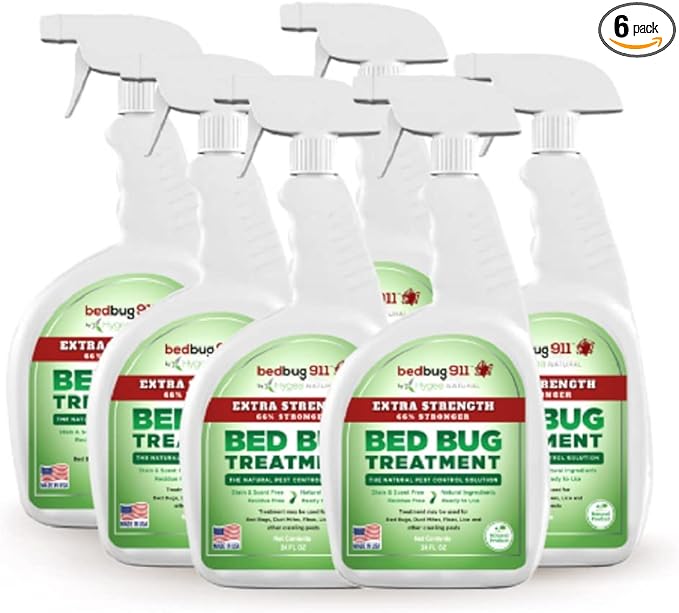 Extra Strength 24 oz Bed Bug & Mite Spray Bundle - Child & Pet friendly - Stain & Odor Free - 66% Stronger Natural Formula (6 Pack)