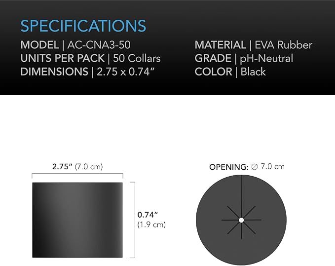 - 50-pack collars fit for 3-inch net cups in hydroponics or aeroponics grow settings and applications.