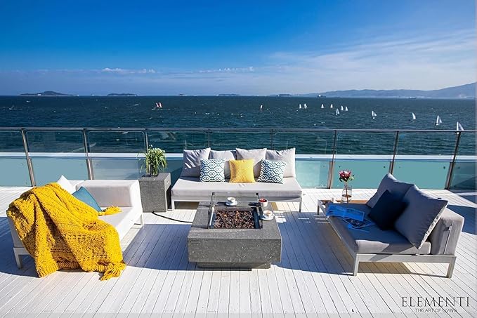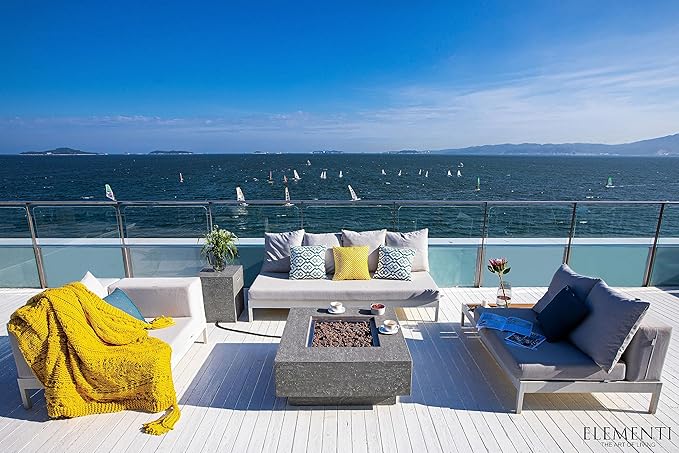 - ✅【Heavy Duty Outdoor Fire Pit】ELEMENTI Gas patio heater the body construction is Handcrafted glass-fiber reinforced concrete. The table is durable and finished to have a high resistance to heat. Whole body is LIGHT GREY color Brighten up your quality of life with a backyard fire pit as your outdoor centerpiece that will have the reflections of dancing flames keeping you and your loved ones warm and cozy