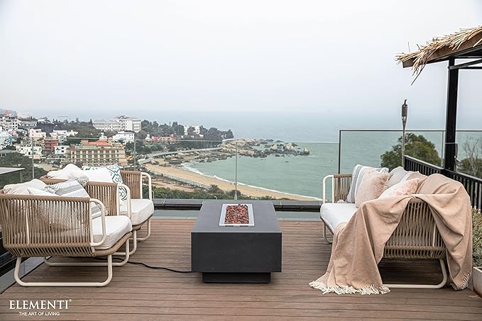 Elementi | Granville Gas Fire Pit Cast Concrete 60" Rectangular Fire Table, Outdoor Fire Pit Electronic Ignition | Canvas Cover, Lava Rock Included | Dark Gray (Propane Gas)