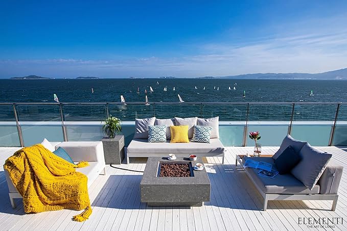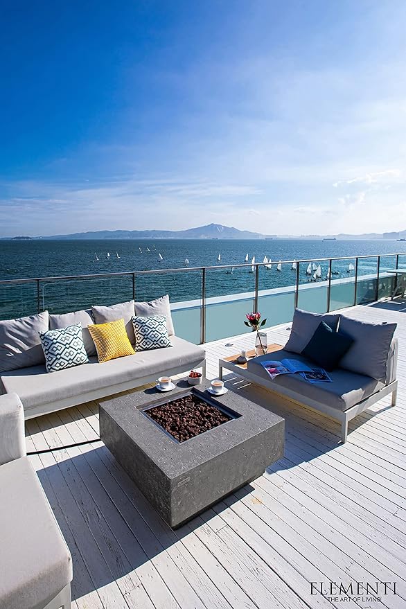 Elementi | Manhattan Gas Fire Pit Cast Concrete 36" Square Fire Table, Outdoor Fire Pit Electronic Ignition | Canvas Cover, Lava Rock Included | Light Gray (Propane Gas)