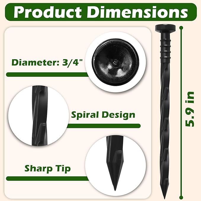 - Easy Installation - The plastic yard spikes is designed with a pointed end which is easy to be pounded into ground or any soil type with a hammer or mallet. Reduce the risk from moving because of heavy frost and rain.