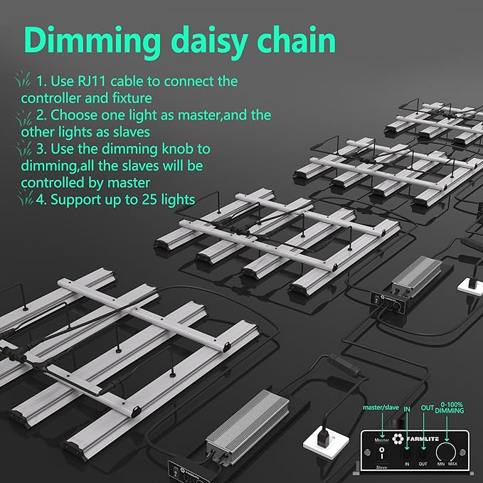 - 【Daisy-Chain Dimming】This grow light for indoor plant has a dimming button to adjust the light intensity required for different plant growth stages.The daisy-chain function allows you to connect up to 25 LED grow lamps and can be dimmed simultaneously.