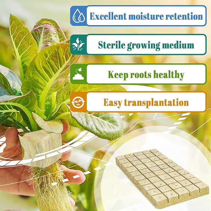 - Package Includes: You will get 2 sheet rockwool cubes, a total of 100 pcs plugs; These lightweight rockwool are suitable for seed germination, cuttings, or cloning, ensuring optimal root development in hydroponics, aeroponics, or soil-cultivated gardening systems
