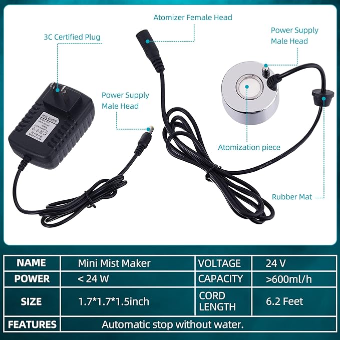 - Simple to Use: Halloween mist maker is easy to operate, it is designed with 24V voltage, you just need to plug in the power, and then put them into the water to work, giving you a convenient use experience