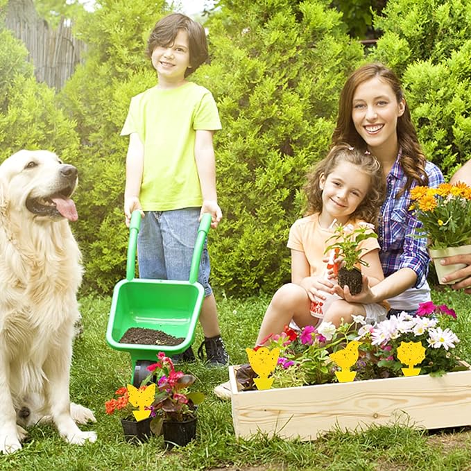 - [5 Shapes + Extra Little Shovel and Strips] Comes with 36 traps of 5 designs that are in the shapes of: birds x9 pcs, butterflies x9 pcs, sunflowers x9 pcs, roses x9 pcs, and extra sheets x2. Also comes with an extra little shovel for digging inside pots to put the trap in. The strips can be used to go through the hole on the trap and tied to hang it on a branch or leaf. 24/7 US Customer Service, free return or refund.