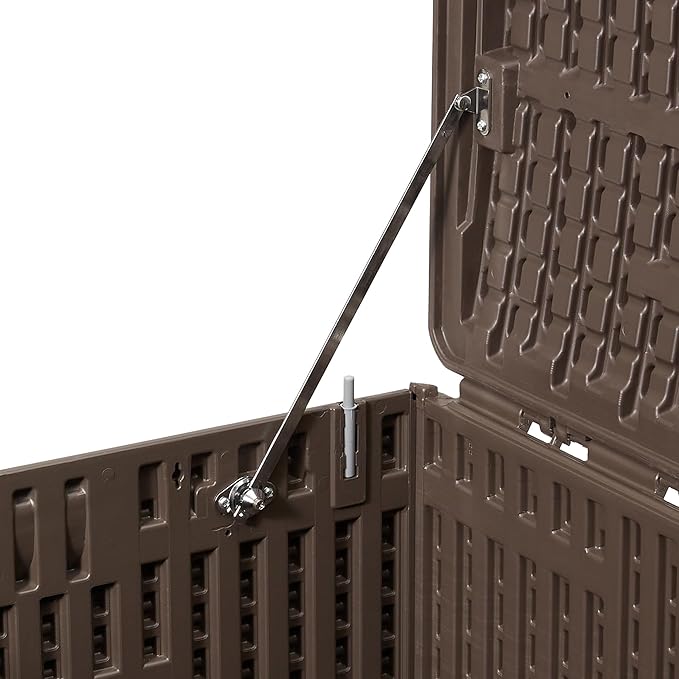 - DURABLE CONSTRUCTION: This outdoor deck box features double-wall resin construction with molded lid hinges that provide long-lasting reliability