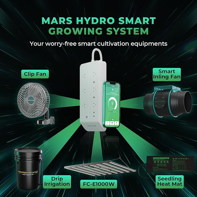 - Foldable & 2-IN-1 Design: Shifting from a detachable style to a foldable design. This not only eliminates the need for installation but also provides storage flexibility, saving commercial growers more installation time. The lighting structure enhanced to a 2-in-1 design featuring both smart and regular lighting modes. To utilize the smart features, the iConnectu Controller must be purchased separately. This WiFi/Bluetooth-enabled controller allows for remote monitoring and equipment control using the MARS HYDRO App from any location. With smart auto-mode and professional grow recipe settings available through the App, users can also manually adjust the light intensity using the dimmer knob.