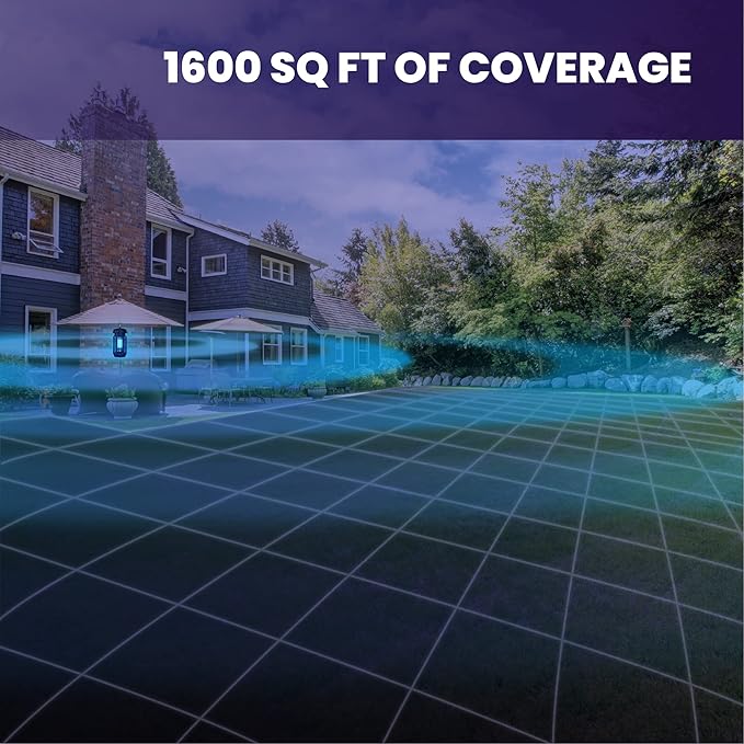 - OUTDOOR BUG ZAPPER: Our blue-violet light naturally attracts bugs, and our 20W bug zapper outdoor eliminates all Mosquitoes, Wasps, Hornets, Flies, Moths, Gnats, and Aedes, allowing you to relax inside and outside in peace. This fly zapper has an effective range of 1,600 sqft, and our waterproof design is perfect for any Backyard, Garden, Patio, Deck, Porch, Balcony, Courtyard, Pool area, or any other outdoor living space.