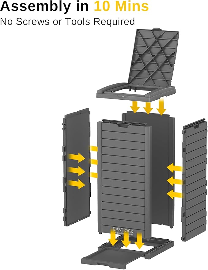- πππ¦π¬ π§π’ ππ‘π¦π§πππ: This outdoor trash bin comes with a detailed user manual. No screws or tools required, just snap the panels together and the installation can be completed in about 10 minutes. For more support, please refer to the installation videos on the page