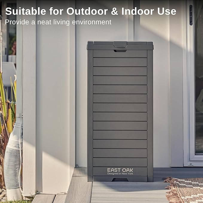 - π―π΄ πππππ’π‘ πππ£ππππ§π¬: 16.10"L x 16.26"W x 33.86"H, compatible with 33-40 gallon trash bags-43~47"L*28~30"W, the East Oak outdoor trash can is suitable for storing indoor and outdoor trash and keeping the house and patio clean