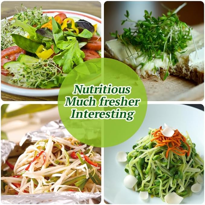 - 【Interesting and Happiness】Growing your own bean sprouts and other vegetables at home is fresher and more delicious! Among other things, sprouts providing thing that few vegetables can provide. Also, the process of growing sprouts is fun, and children can participate in the entire process of growing. From small sprout seeds to mature sprouts, children can witness its growth in just a few days.You'll love this sprouting kit!