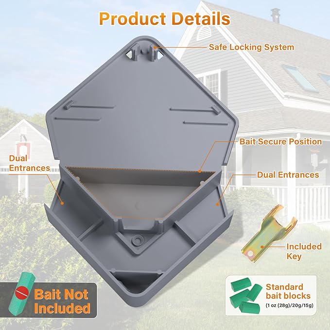 - 【Locking Mechanism Protects Children and Pets】Tamper-proof design, safe child lock, protect your family's safety. The top lock covers of our Mouse boxes are opened with a dedicated key for easy inspection and refill (6 keys are included).