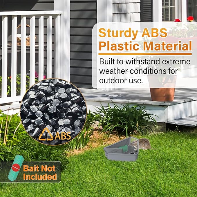 - 【Stealth Design & Weatherproof】The weatherproof, refillable Mice box is perfect for indoor and outdoor use. This mouse box is a perfect size (5" L, 3.5" W, 1.25" H) for inside-outside placement, corners, etc.. Small footprint, low-key and harmonious black make this mouse station can be perfectly integrated with your indoor and outdoor places.