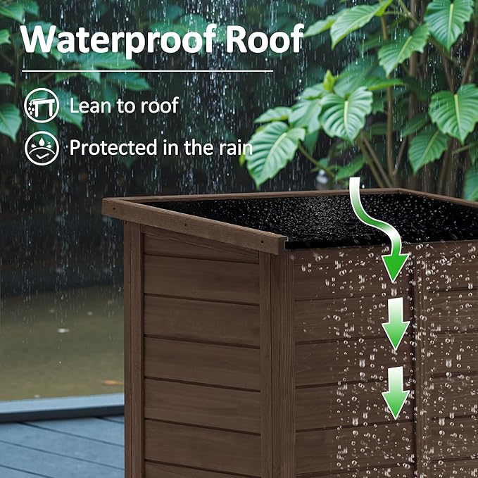 - Waterproof Roof: The sloping roof is covered with asphalt, it's not only waterproof but also void water accumulation, making the garden shed longer life outdoors.