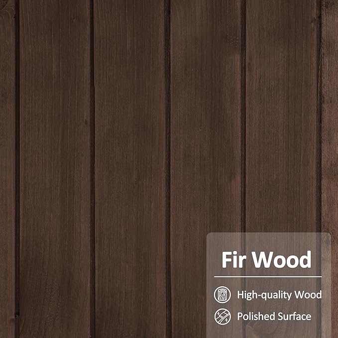 - Fir Wood: The outdoor storage cabinet is made of high-quality pure fir wood, and the exterior has been polished to express a rustic style. Medium brown blends easily with other décor and natural settings.