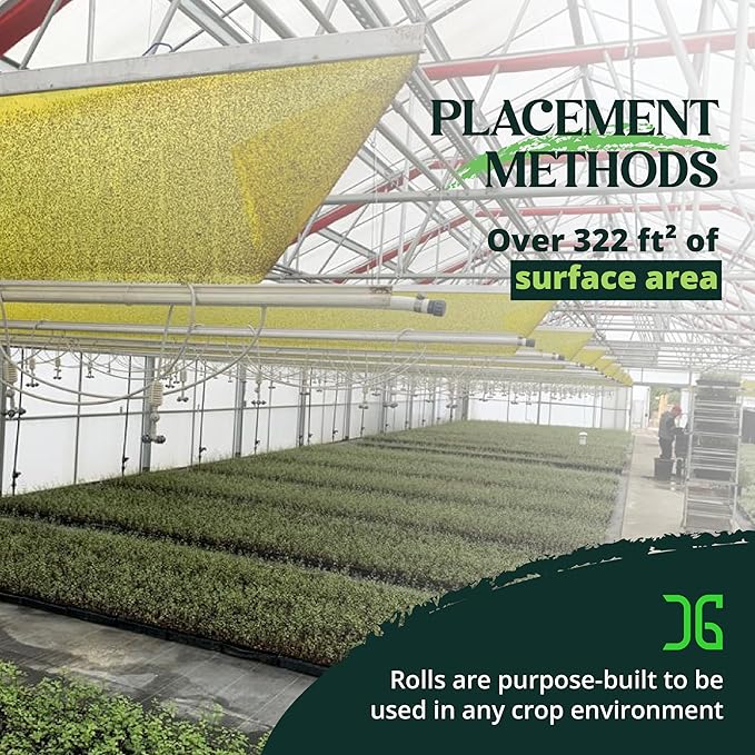- DURABLE ADHESIVE FORMULA: Our AG Rolls are made with a non-toxic and pesticide-free double-sided adhesive to maximize catching potential and surface space, so you can get the most out of each spool while also protecting your plants against a wide assortment of pests. Easily cover your nurseries, hydroponic garden, agriculture growing fields, a large or small greenhouse with this insect trap.