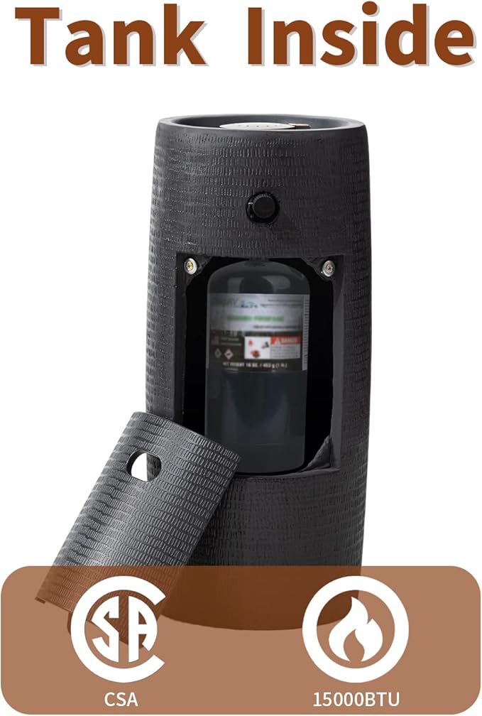 - ✔️【 Unique Craftsmanship & Design 】 - The propane column is made of sturdy concrete, spraying magnesium oxide on surface to protect from cracking. The internal burner is made of stainless steel for a longer working and evenly heated.