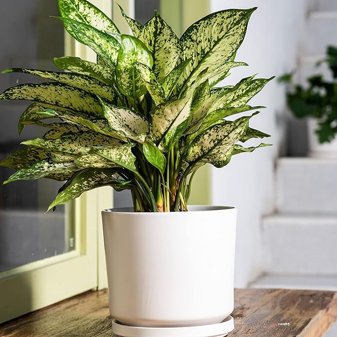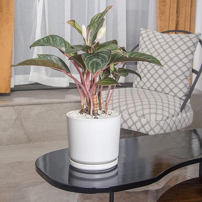 Ekirlin 7 inch Plant Pots,Ceramic Flower Planters Indoor,Modern Succulents Containers with Drain Hole Saucer,Decorate Home,Office & Outdoor (White)