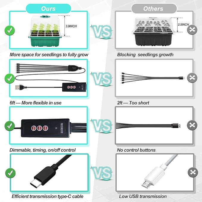 - π [Higher Humidity Dome]- We read customersβ feedback that the low dorm will impact growth after the seeds sprout. So we raised the height of the humidity dome to 3.9 inches, then you donβt need to worry about the seeds outgrowing the pots.