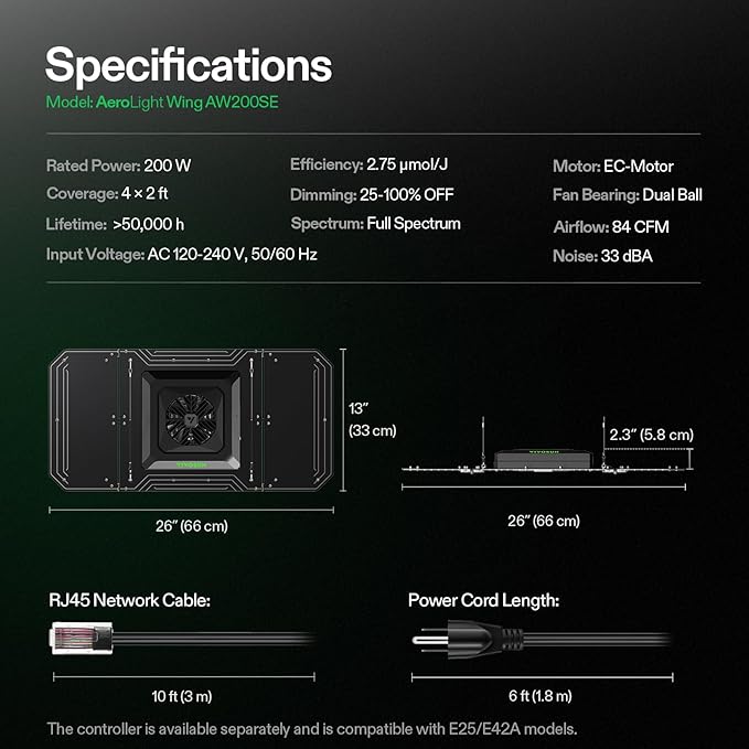 VIVOSUN AeroLight Wing AW200SE, LED Grow Light 200W with Integrated Circulation Fan, Compatible with App, Used with Growhub Controller E42A/E25 to Achieve More Functions for 2x4/3x3 Grow Tent