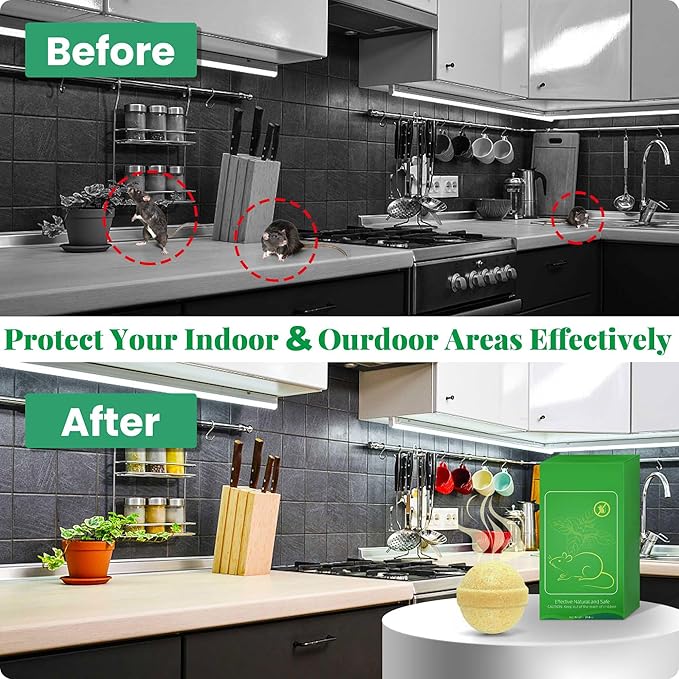 - 【SAFETY & HARMLESS】- Rat repellent natural plant peppermint, lemongrass oil and Geraniol,etc., it will keep rodent away without harming them; safe for human, pets, lawns, garden and fruits. Please use with confidence and boldness