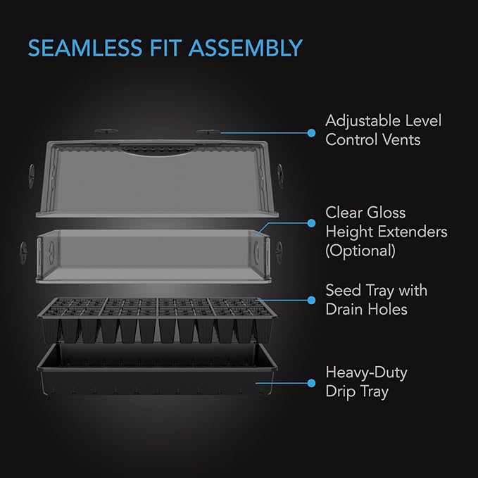 - Optional height extension panels with more adjustable vents raise the dome for propagation projects.