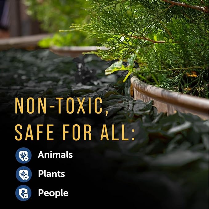 - Simple Application: Simplify landscaping tasks by easily applying this black mulch paint, eliminating heavy mulch bags. Mix with water and spray directly onto black, brown, or red mulch varieties for an effortless mulch refresh