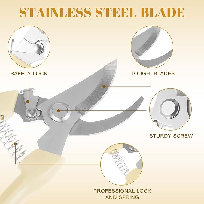 - Heavy Duty Blade: these flower scissors are made of quality stainless steel blade, sturdy and reliable, and the straight blade and curved blade are suitable for cutting stems and light branches with a diameter thinner than 1/ 3 inch, ideal for gardening and greening, pruning branches and picking fruits