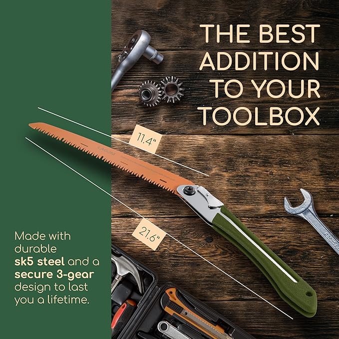 - [Safety, by Design] Its 3-gear lock design holds the saw firmly in place—open when you're working, closed when you’re not. Because when you're out in the elements, your tools shouldn’t second-guess you.