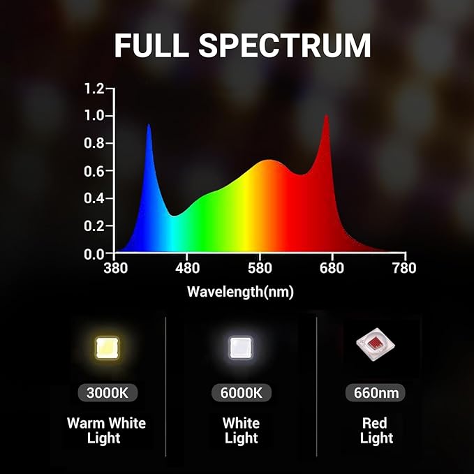 - Full Spectrum 720W LED Grow Light: The spectrum ratio is adjustable to provide more matching spectrum for plants, full spectrum lighting of natural light, dimming function enable vegetables and flowers and fruits to provide appropriate light for plants at different growth stages, from seedling to flower, greatly Increase your harvest