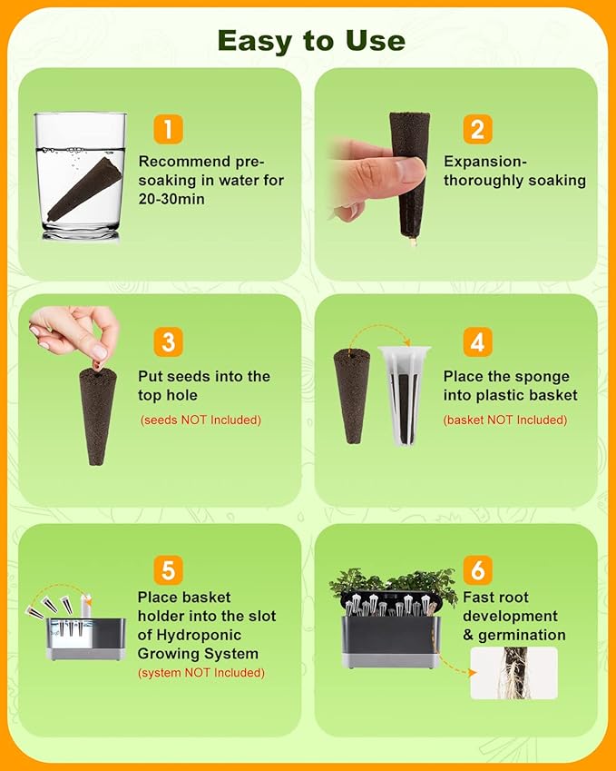 - Premium with High Germination Rate: These hydroponic refills are made from sphagnum peat moss with a good size hole, strong water wicking ability, balanced PH, breathable, good-shape, safe for healthy seed planting.