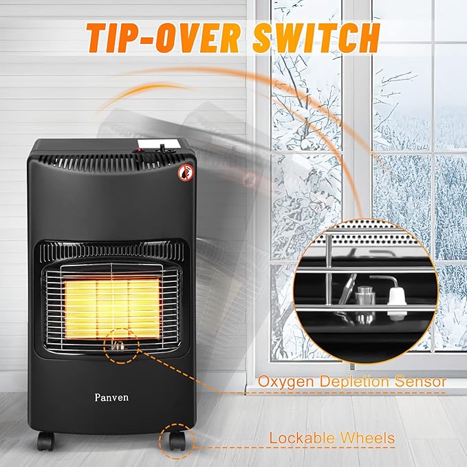 - PROTECTIONS: Built-in tip-over switch and Oxygen Depletion Sensor, which will shut down patio heaters when they accidentally fall over or oxygen content in the air is lowered. Come with a CSA certificate LP regulator, is durable for years of use, and guards the safety of your family.