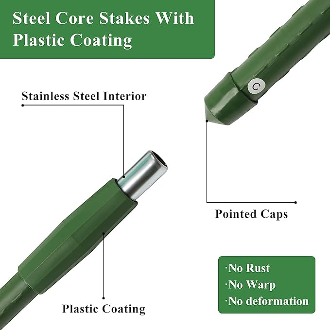 - 【Sturdy and Durable】: Made of anti-rust steel with polyethylene-coating , the garden trellis for climbing plants outdoor is waterproof and high temperature resistant, and it can hold up to 70lbs.