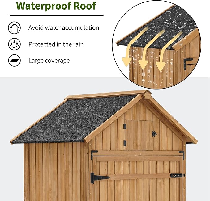 - Waterproof Asphalt Roof: The sloped roof is covered with durable asphalt, providing excellent waterproofing and preventing water accumulation; This design prolongs your outdoor storage cabinet lifespan