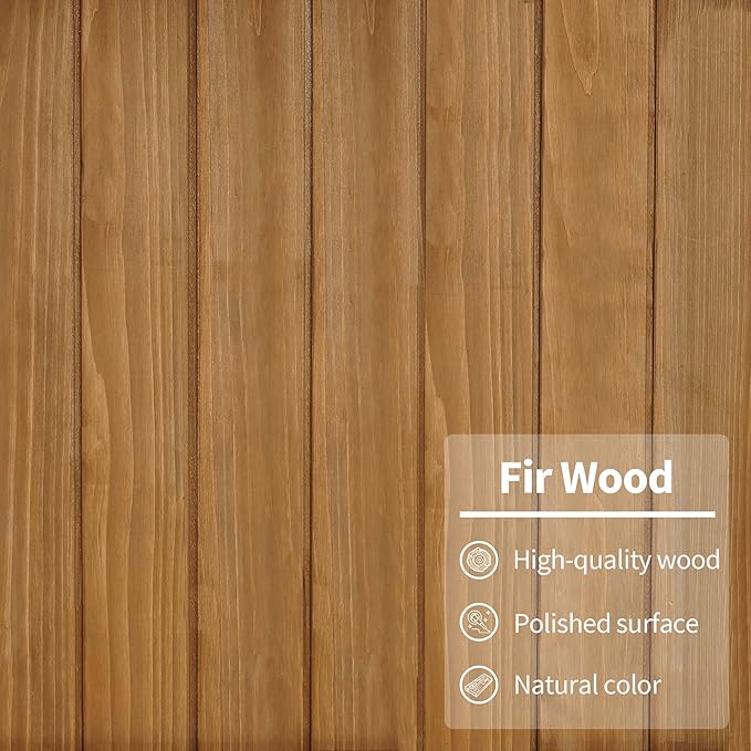 - Fir Wood Construction: Crafted from fir wood with a polished exterior, this storage shed showcases a natural, rustic style that blends seamlessly with any outdoor décor; The medium brown finish enhances its aesthetic appeal while ensuring long-lasting durability