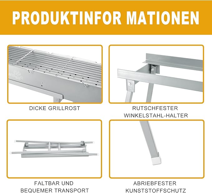 - Foldable and Portable,Strong and High Temperature Resistant:Strong solid body made of alloy steel with 2mm thick coalplate, Steady foldable stand holds up to 150KG.Stand of the barbecue grill is designed to be foldable, you can have the bbq grill anywhere you would like to set up.Handles on both sides also help you move the camping grill with ease.