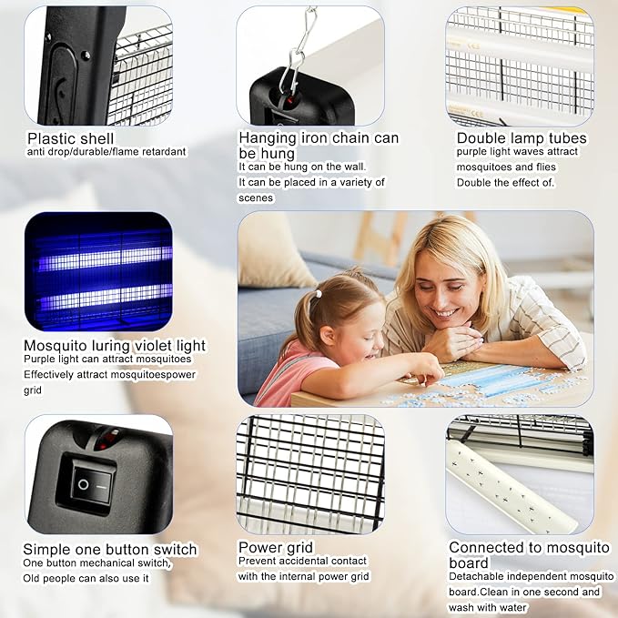 - Safety Material: our indoor mosquito killers are made of reliable plastic and UVA bulbs, there is no harm to eyes; the light zapper with mesh screen prevents children and pets from accidentally contacting electrical grid; no load circuit protection keeps the voltage stable and avoid damage to the mosquito shocker, it's ideal alternative for smelly, nasty sprays