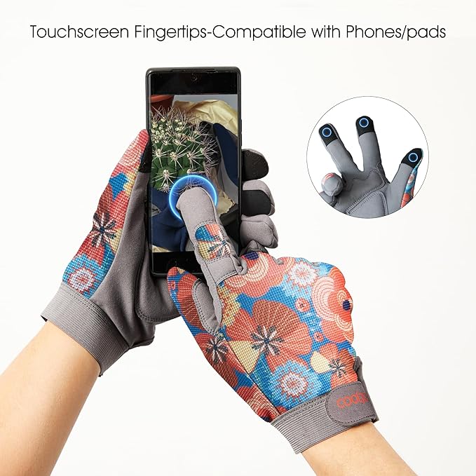 - Cute Designs from COOLJOB: The top of our gloves is made from a breathable mesh, which is 4-way stretch and flexible. Allows air in and cools hands down. Printed in bright and cheerful flower pattern, our gloves will definitely be your favourite one. The velcro strap at the wrist aims to keep soil, debris and bugs out. Light to heavy duty works approved