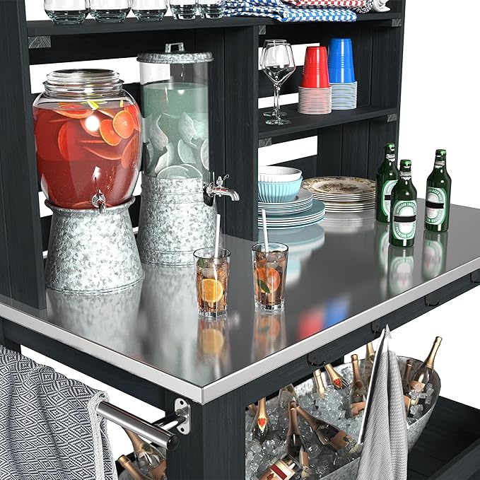 - Versatile: Can be ideal potting bench OR it's ready to roll into action at your next big party or barbecue as a large outdoor prep station table. Offers a multipurpose hosting solution which allows you to cook,serve,pour drinks, and perform other duties while never being far away from your guests. Use it as an outdoor kitchen island, BBQ grill cart,an outdoor bar, a serving cart, a prep table.