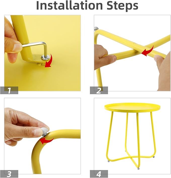 - 【Easy To Install】: This Weather Resistant Steel Patio Side Table is easy to install. All the screws and tools are included,it can be assembled within 5 min or faster. A variety of colors and modern design styles are presented in this piece that will stand out anywhere.