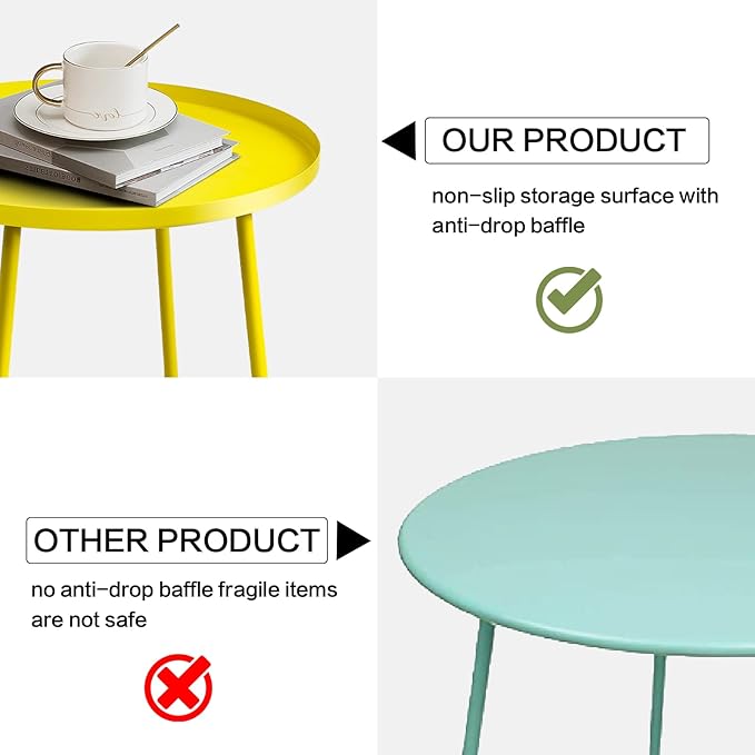 - 【Indoor & Outdoor Use】: This new version steel patio side table with unique edge curl design prevents items from falling out. Can be placed in your living room as a side table, sofa table, coffee table, phone table, the patio table weighs only 6 lbs, light and portable. You can use it indoors or outdoors as needed.