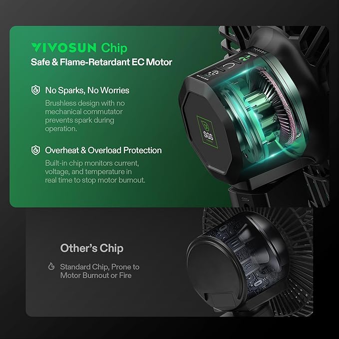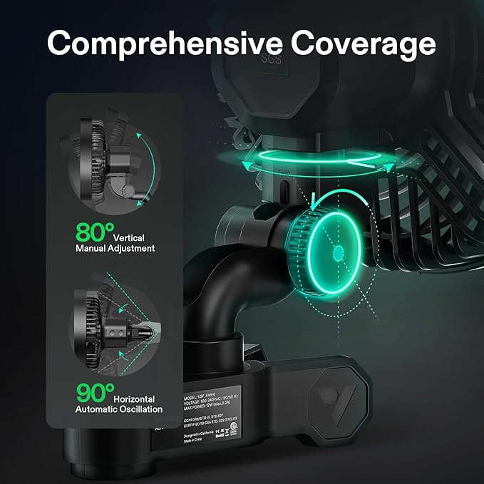 - Powerful & Quiet: Powered by an upgraded dual ball bearing EC motor, this clip fan delivers powerful 320 CFM airflow at a noise level of just 33 dB(A); The local timer provides 3 cycle settings, making it easy to customize air circulation