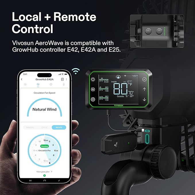 - Smart Control with GrowHub: Compatible with the Vivosun GrowHub E42/E42A/E25 for remote app control; Syncs with SGS (Smart Grow System) to operate with other connected devices and optimize your growing environment